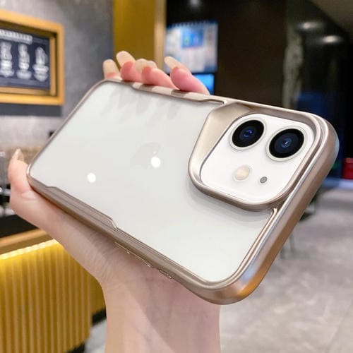 Caja de Teléfono Híbrida para iPhone 12 con Marco de TPU Galvanizado (Dorado)
