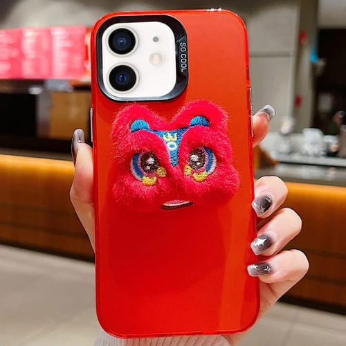 Funda para Teléfono iPhone 12 Muñeco de Peluche Danza del León (Rojo con Espalda Roja)
