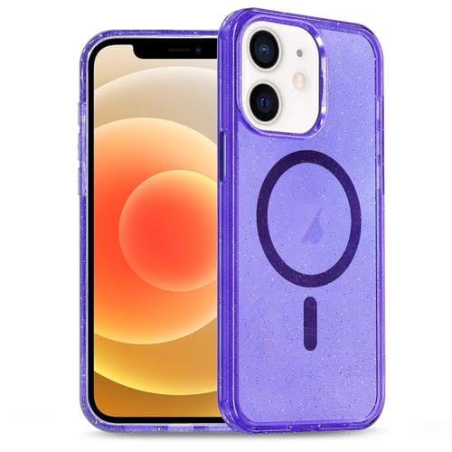 Funda para Teléfono iPhone 12 TPU Hybrid PC Glitter Powder Magsafe (Púrpura)