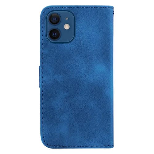 Funda para iPhone 12 Mini Caja de Teléfono Cuero En Relieve (Azul)