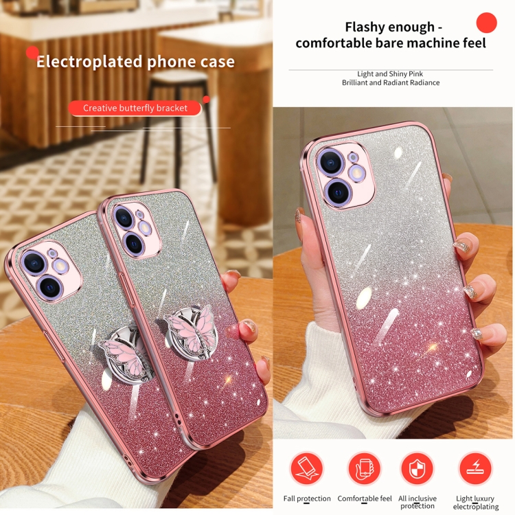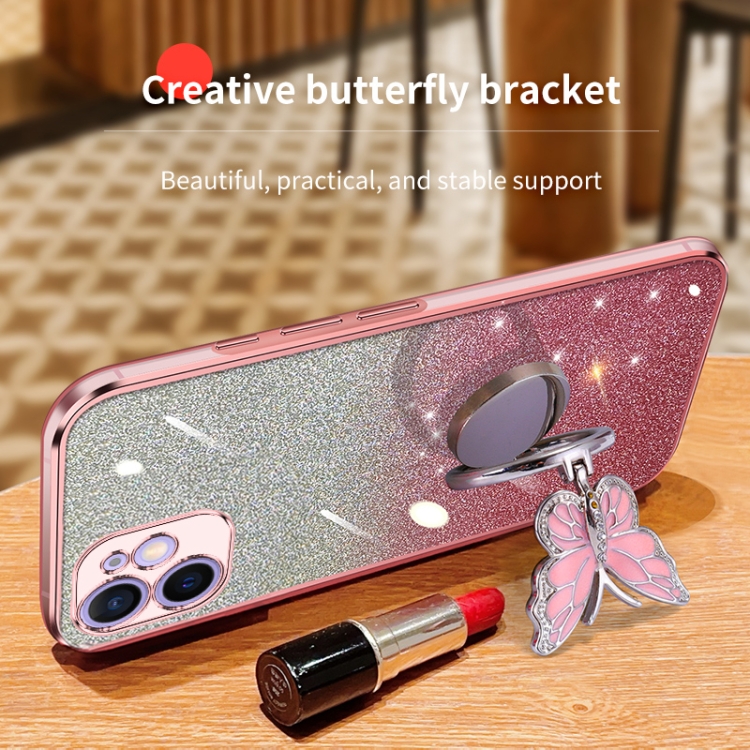 Funda para Teléfono TPU para iPhone 12 Mini con Soporte de Mariposa y Brillo Degradado (Negro)