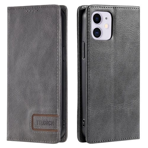 Funda de Teléfono Ttudrch para iPhone 12 Mini Cuero Magnético con Textura Retro (Gris)