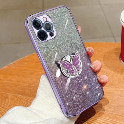 Funda para Teléfono TPU iPhone 12 Pro Soporte Mariposa Brillo Degradado (Púrpura)