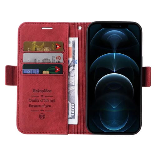 Estuche de Cuero Betopnice para iPhone 12 Pro Max con Hebilla de Doble Cara (Rojo)