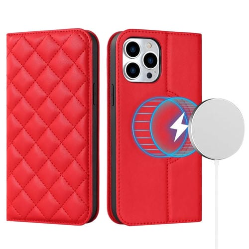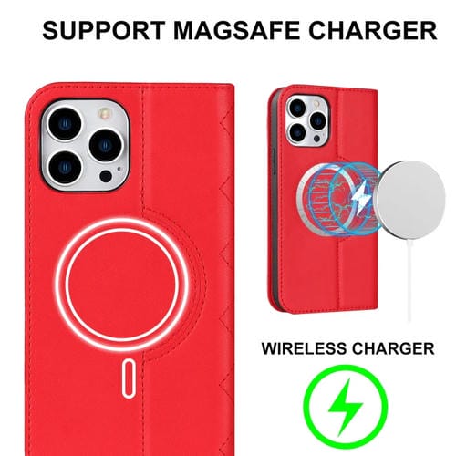 Funda para iPhone 12 Pro Max Rhombic Magsafe Rfid Cuero Antirrobo (Rojo)