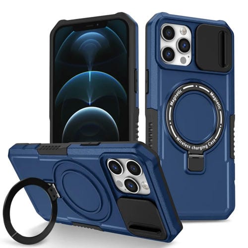Funda para Teléfono iPhone 12 Pro Sliding Camshield Magsafe Holder TPU Hybrid (Azul Real)