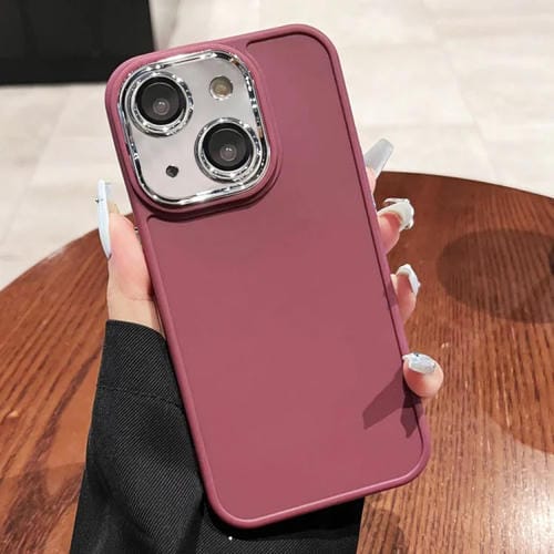 Caja de Teléfono para iPhone 13 con Marco de Lente Galvanizada y Película de Lente (Rojo Vino)