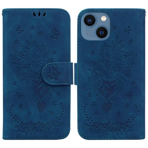 Funda de Teléfono iPhone 13 Mini Cuero En Relieve Mariposa Rosa (Azul)