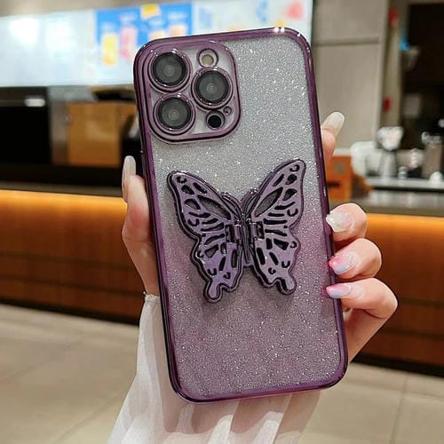 Estuche para teléfono TPU iPhone 13 Pro Max con Mariposa 3D y Brillo Degradado Galvanizado (Púrpura Degradado)