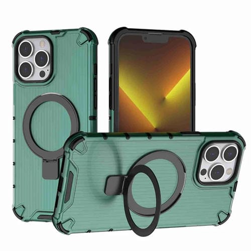 Funda para Teléfono iPhone 13 Pro Max con Soporte Rejilla a Prueba de Golpes (Verde)