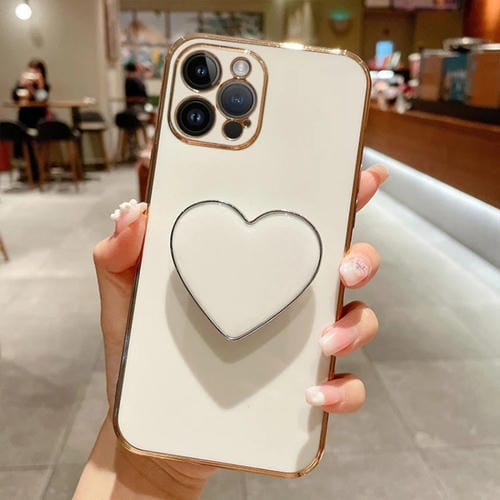 Funda para teléfono iPhone 13 Pro Max Galvanoplastia Love Heart Holder TPU (Blanco)