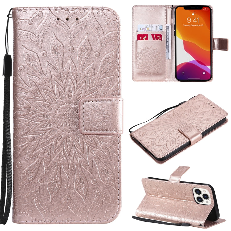 Estuche Flip Horizontal para iPhone 13 Pro Max Cuero PU Patrón Girasol Ranuras Tarjetas Billetera Cordón (Oro Rosa)