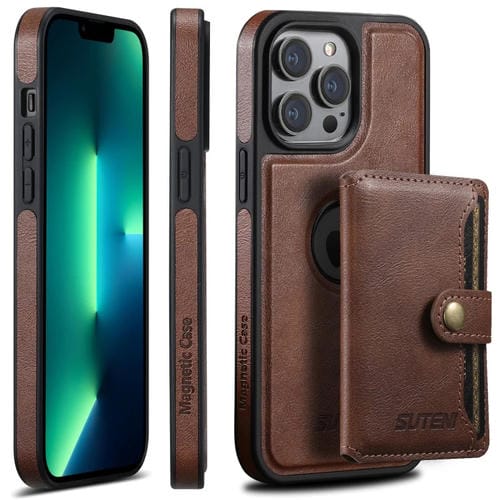 Funda para Teléfono Suteni M1 Oil Wax Magsafe para iPhone 13 Pro Max con Bolsa para Tarjeta Horizontal Desmontable (Marrón)
