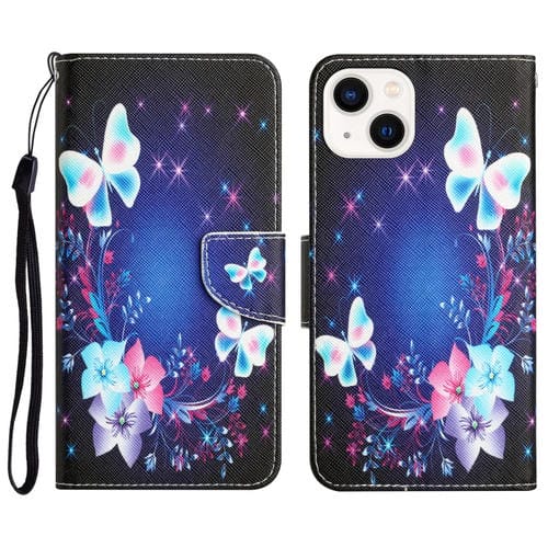 Estuche para teléfono iPhone 14 cuero con dibujo coloreado (Mariposa)