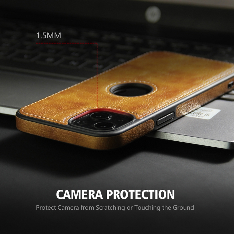Funda de Teléfono iPhone 14 con Costuras Textura de Cuero (Marrón)
