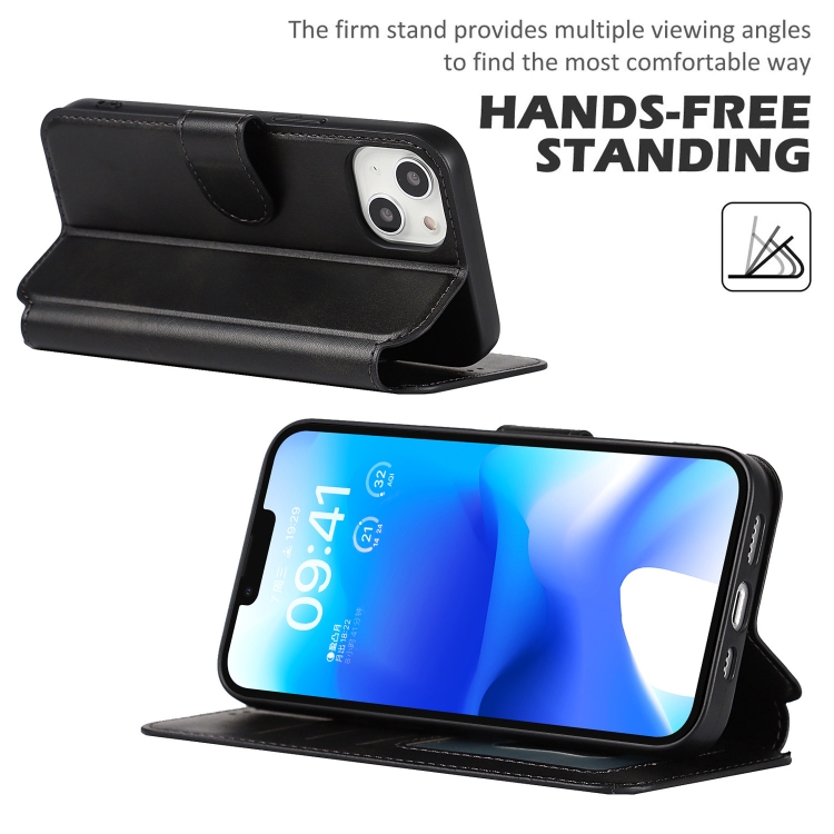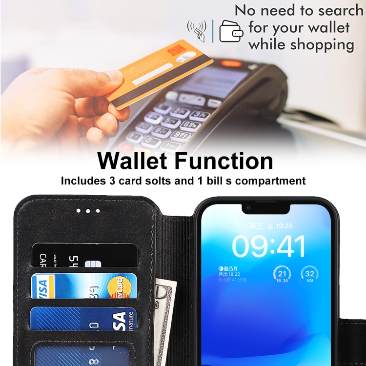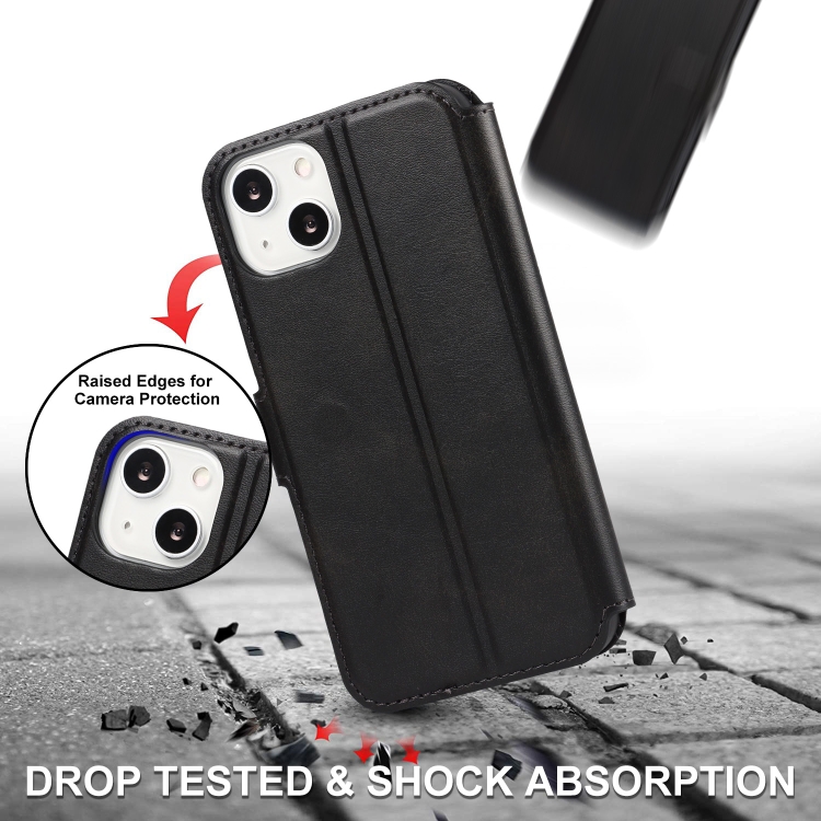 Funda de Teléfono para iPhone 14 Cuero PU + TPU a Prueba de Golpes (Negro)