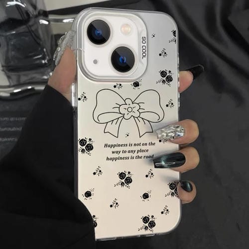 Funda híbrida para iPhone 14 Plus TPU y PC con pintura plateada (Lazo floral blanco)
