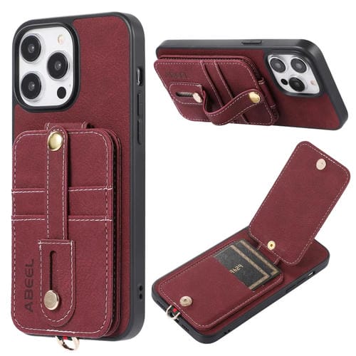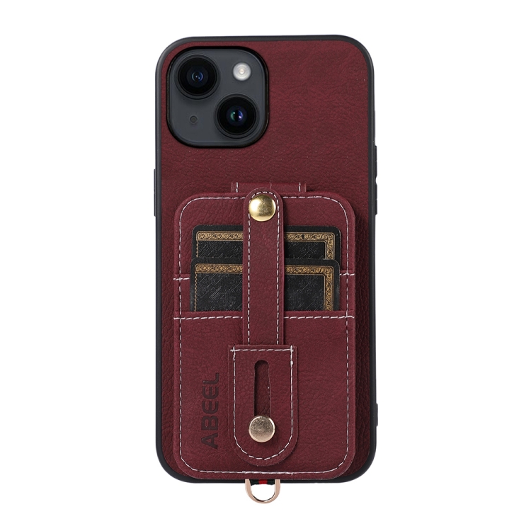Funda para iPhone 15 Abeel Litchi Texture Card Bag PU con Tarjetero (Púrpura)