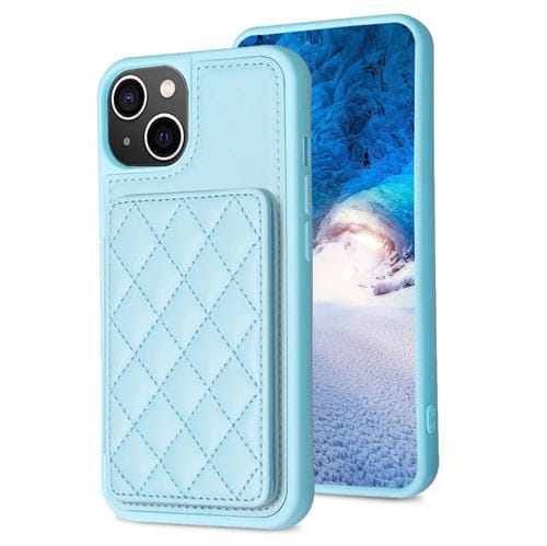 Funda para iPhone 15 Bf25 Square Plaid Card Bag Holder con soporte para tarjetas (Azul)