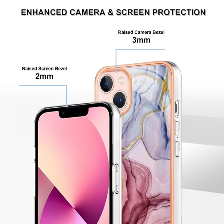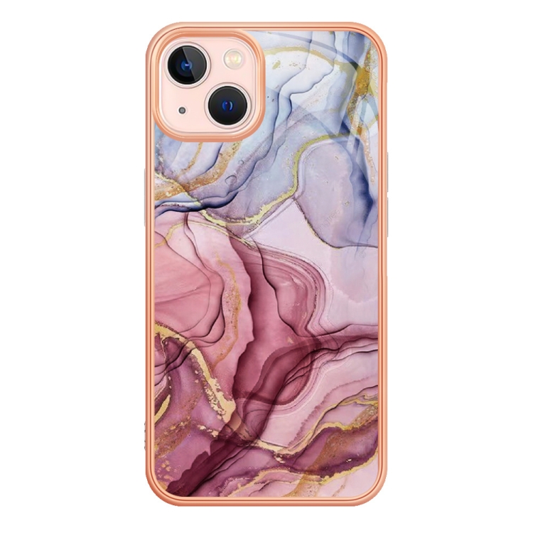 Caja de Teléfono iPhone 15 Imd Doble Cara Mármol Galvanoplastia (Rose Red)