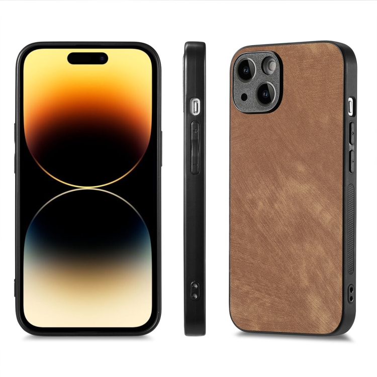 Funda para iPhone 15 Enkay Retro Leather Skin PC con Película de Vidrio Aluminio Silicio (Marrón)