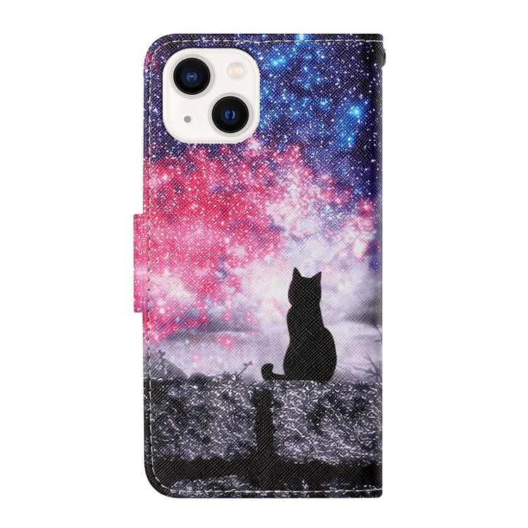 Estuche para Teléfono iPhone 15 con Tapa de Cuero y Dibujo 3D (Star Cat)