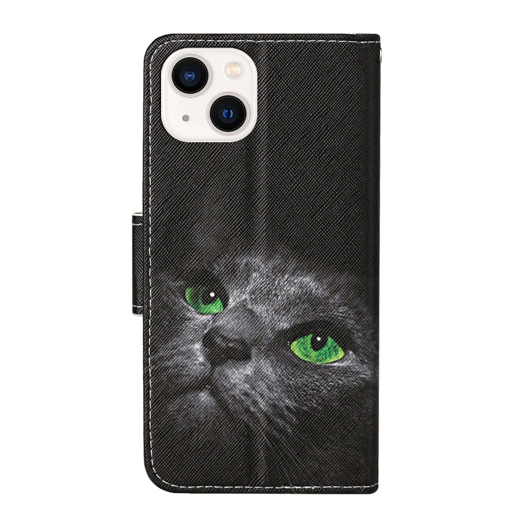 Estuche para Teléfono iPhone 15 con Tapa de Cuero y Dibujo 3D (Gato Negro)