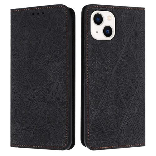 Estuche para Teléfono iPhone 15 Cuero Adsorción En Relieve Étnico (Negro)