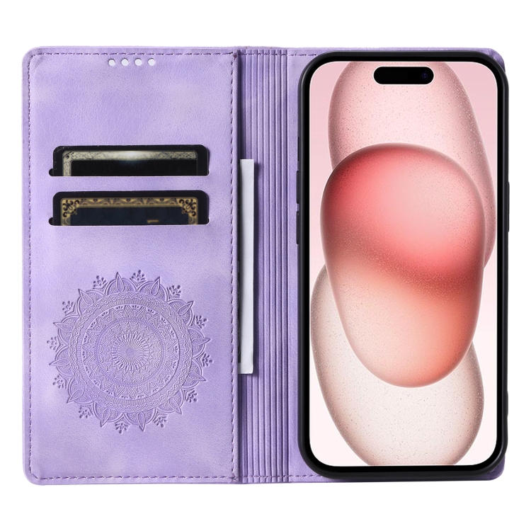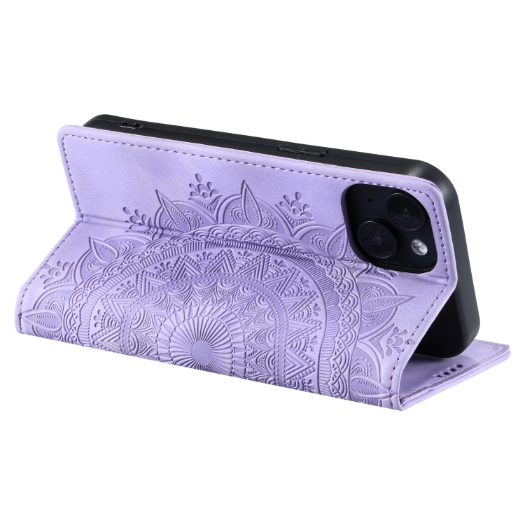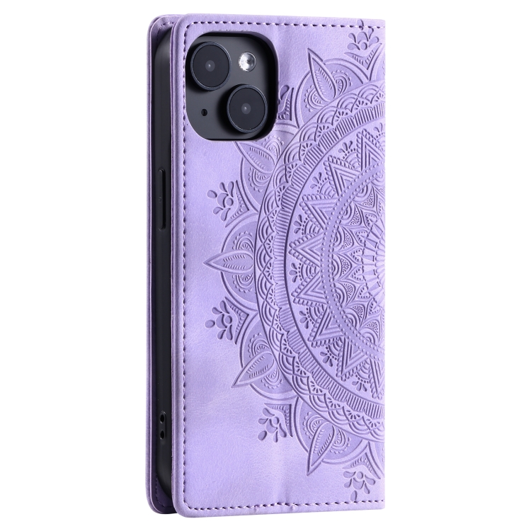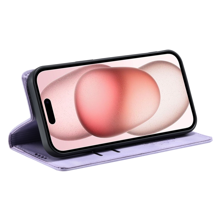 Estuche para Teléfono iPhone 15 Cuero Magnético con Relieve de Tótem (Púrpura)