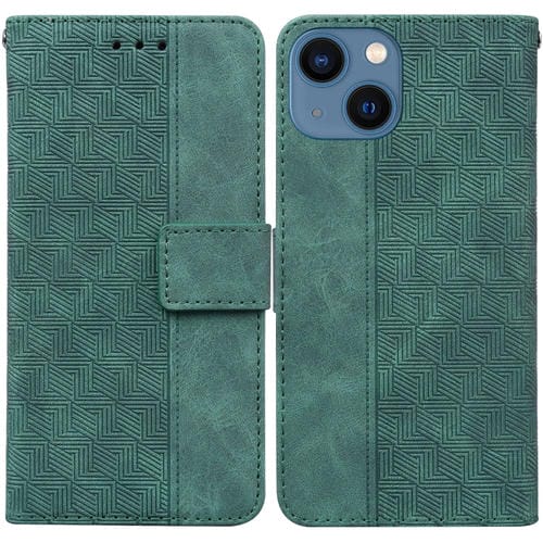 Funda de Teléfono para iPhone 15 Cuero con Relieve Geométrico (Verde)
