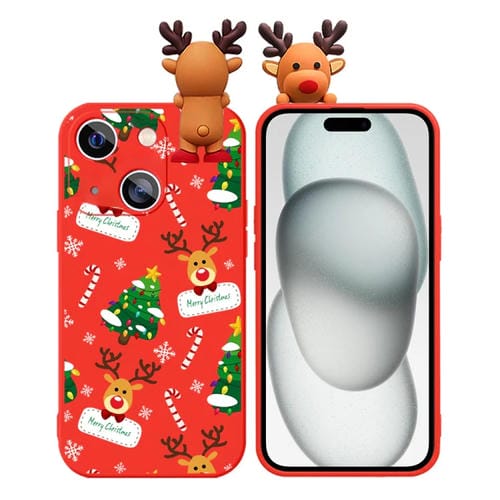 Funda de teléfono TPU para iPhone 15 con muñeco en relieve de ciervo y dibujo de árbol de Navidad