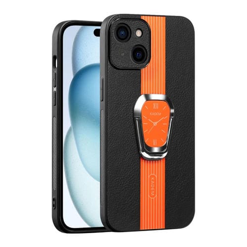 Funda Magnética para iPhone 15 con Parte Trasera de Cuero Litchi y Soporte (Naranja)