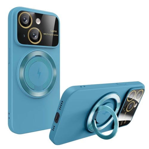 Funda para Teléfono iPhone 15 con Soporte Magnético Magsafe y Ventana Grande (Azul Cielo)