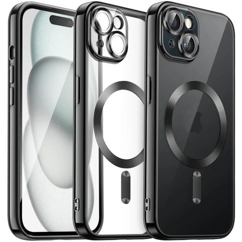 Funda para Teléfono TPU Galvanizada para iPhone 15 Transparente Magnética (Negro)