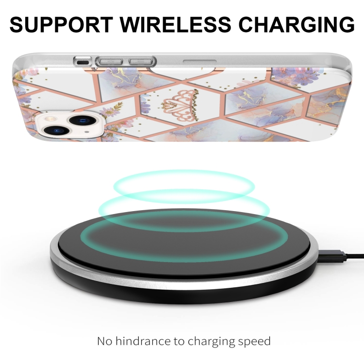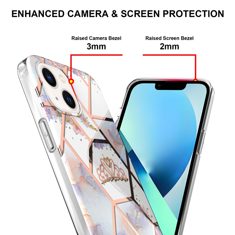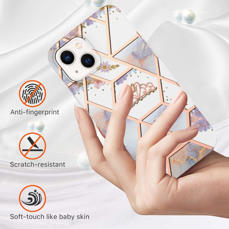 Funda para iPhone 15 TPU Galvanoplastia Empalme Mármol Patrón de Flores a Prueba de Golpes (Corona)