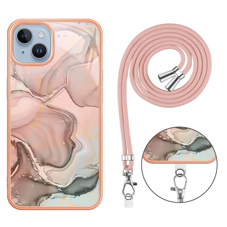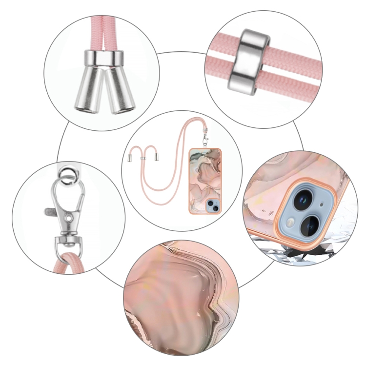 Funda para Teléfono iPhone 15 Galvanoplastia Imd TPU con Cordón (Oro Rosa)