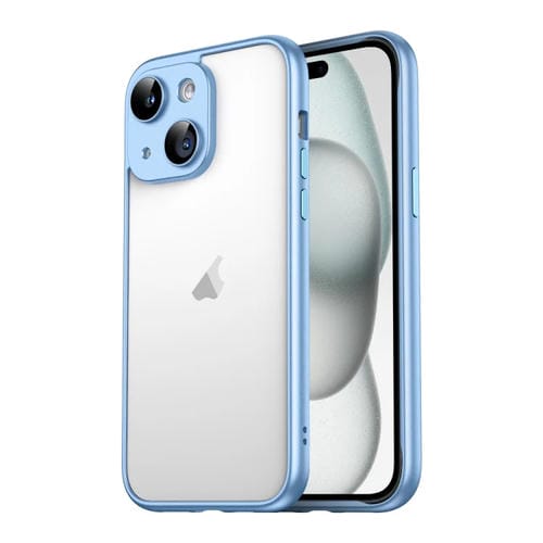 Funda para iPhone 15 Macaron PC Marco de Borde Puro con Película de Vidrio para Lentes (Azul)