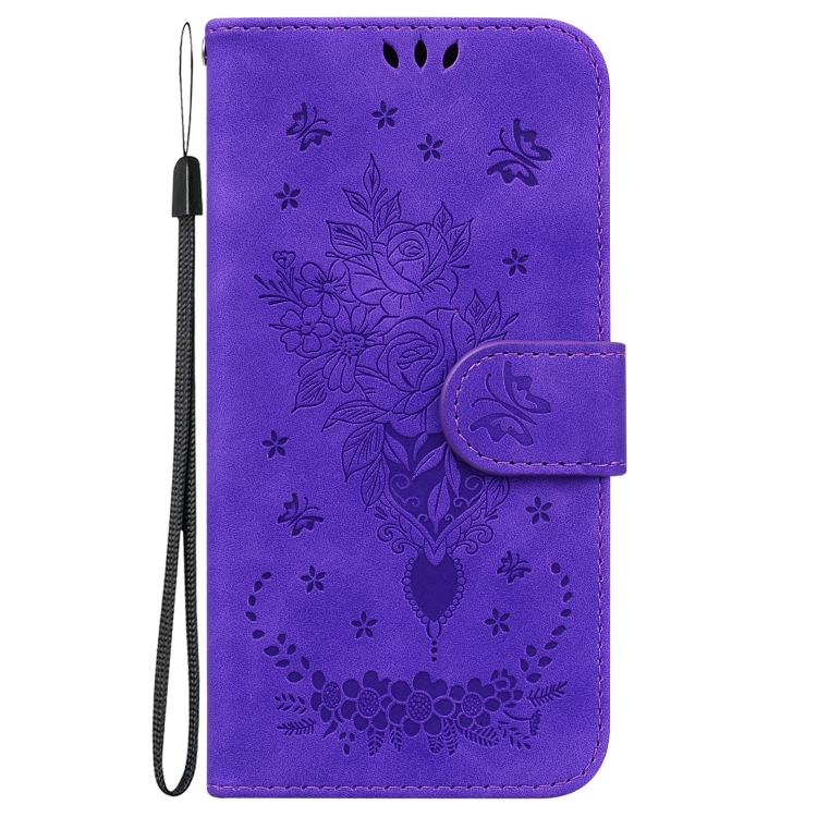 Estuche para teléfono Cuero Butterfly Rose para iPhone 15 Plus (Púrpura)