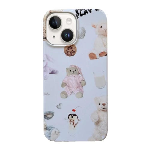Estuche rígido para teléfono iPhone 15 Plus con Película artesanal dibujos animados (Oso de Peluche)