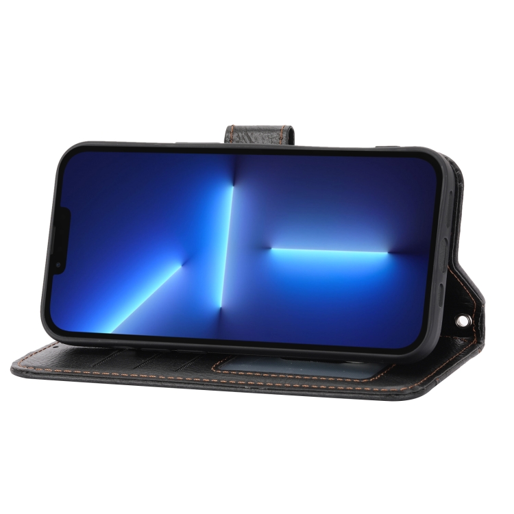 Funda de Cuero para iPhone 15 Plus con Billetera y Cremallera Piel de Aceite (Negro)