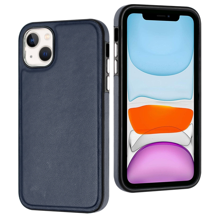Funda de teléfono para iPhone 15 Plus cobertura completa textura de cuero (Azul)