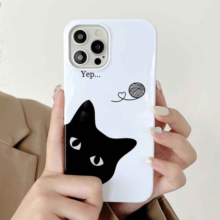 Funda para Teléfono iPhone 15 Plus Patrón Pintado PC (Gato Negro)