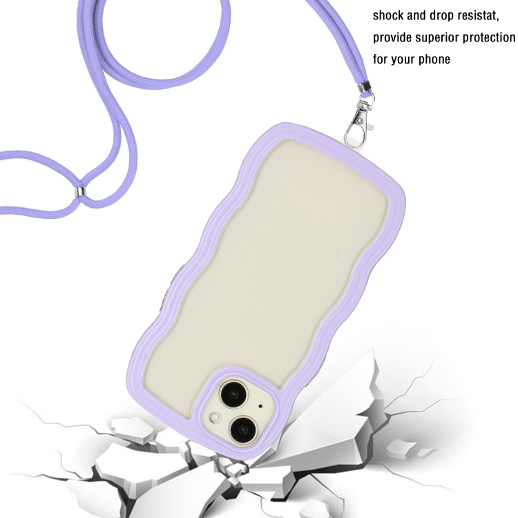 Funda para iPhone 15 Plus Lanyard Candy Color Wave TPU Clear PC (Púrpura)