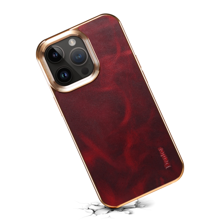 Funda para iPhone 15 Pro Denior Oil Wax Cowhide Plating Phone Case (Rojo)