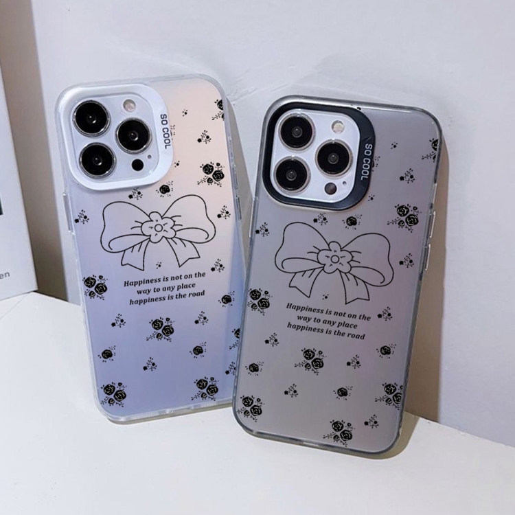 Estuche híbrido para iPhone 15 Pro TPU y PC con pintura plateada (Lazo Floral Blanco)