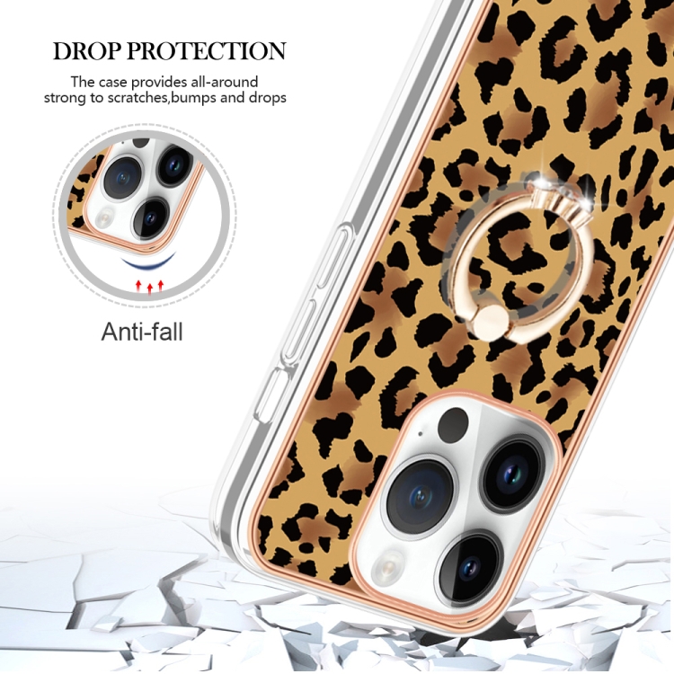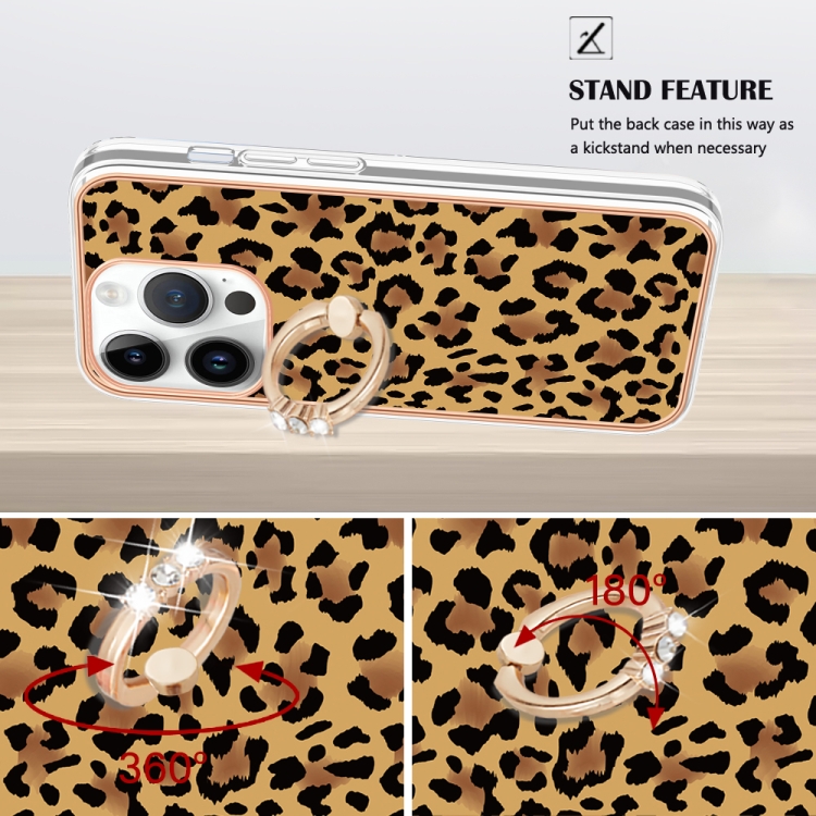 Funda para iPhone 15 Pro Galvanoplastia Imd Doble Cara con Soporte para Anillo (Leopardo)