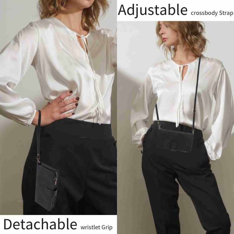 2. Ranuras para tarjetas multifuncionales, billetera, equipada con un cordón que se puede cruzar en diagonal, lo cual es conveniente para viajar.