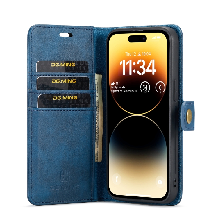 Funda para Teléfono Dg.Ming iPhone 15 Pro Max Cuero Magnético Desmontable Textura Crazy Horse (Azul)