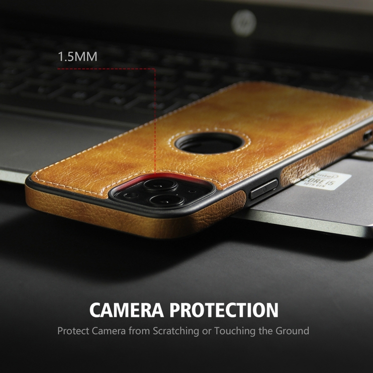 Funda para Teléfono iPhone 15 Pro Max Costuras Textura de Cuero (Marrón)