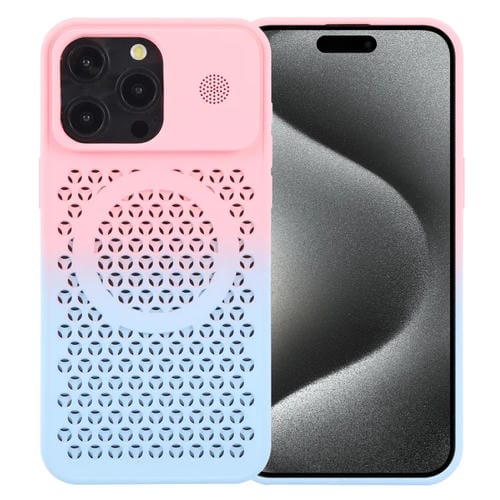 Estuche para Teléfono iPhone 15 Pro Max Honeycomb Cooling Aromaterapia Magsafe (Rosa Azul)